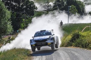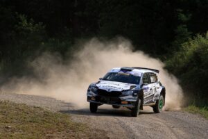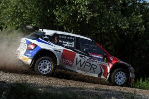 Chiude il podio di questa “Power Stage” il veneto Giacomo Costenaro, con Bardini (Skoda Fabia Evo Rally2 DeltaRally), che ha pagato un ritardo di poco superiore ad un secondo e riuscendo a regolare una pattuglia di altre vetture boeme, con sette equipaggi in poco più di due secondi. Al quarto posto in prova speciale, si piazza il ligure Fabio Andolfi, con Gonella, ma un minuto di ritardo (10 secondi effettivi) pagati al C.O. di uscita del successivo Parco Assistenza lo fa precipitare al 29esimo posto. Quarta posizione che eredita il russo Nikolay Gryazin, con Aleksandrov che a sua volta ha la meglio sul veneto Giandomenico Basso, con Granai, lontano dallo sterrato da un po’ di tempo. Sesto assoluto Massimiliano Tonso, affiancato dal sammarinese Massimo Bizzocchi. Seguono l’esperto versiliese Emanuele Dati, con Ciucci, autore di una divagazione nello shakedown di stamattina, davanti al sardo Nicola Tali, con Frau. Ci si aspettava di più dal rientrante Umberto Scandola, con Michi, che, lontano da molto tempo dalle gare e dallo sterrato, salvo sporadiche occasioni, deve ritrovare confidenza e meccanismi. Partenza leggermente sottotono anche per gli attesi Tommaso Ciuffi, con Cigni e per Enrico Oldrati, con De Guio, ma anche per i beniamini sammarinesi Daniele Ceccoli, con Capolongo e Jader Vagnini, con Martina Musiari.